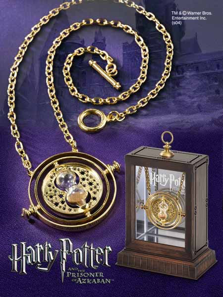An authentic representation of Hermione’s Time-Turner™ as seen in Harry Potter and the Prisoner of Azkaban™. The Time-Turner™ is centered with a working miniature hourglass and its inner rings rotate. Plated with 24k gold, it measures 1.4 inches (3.4925 cm) in diameter. The chain measures 18 inches (45.72 cm).